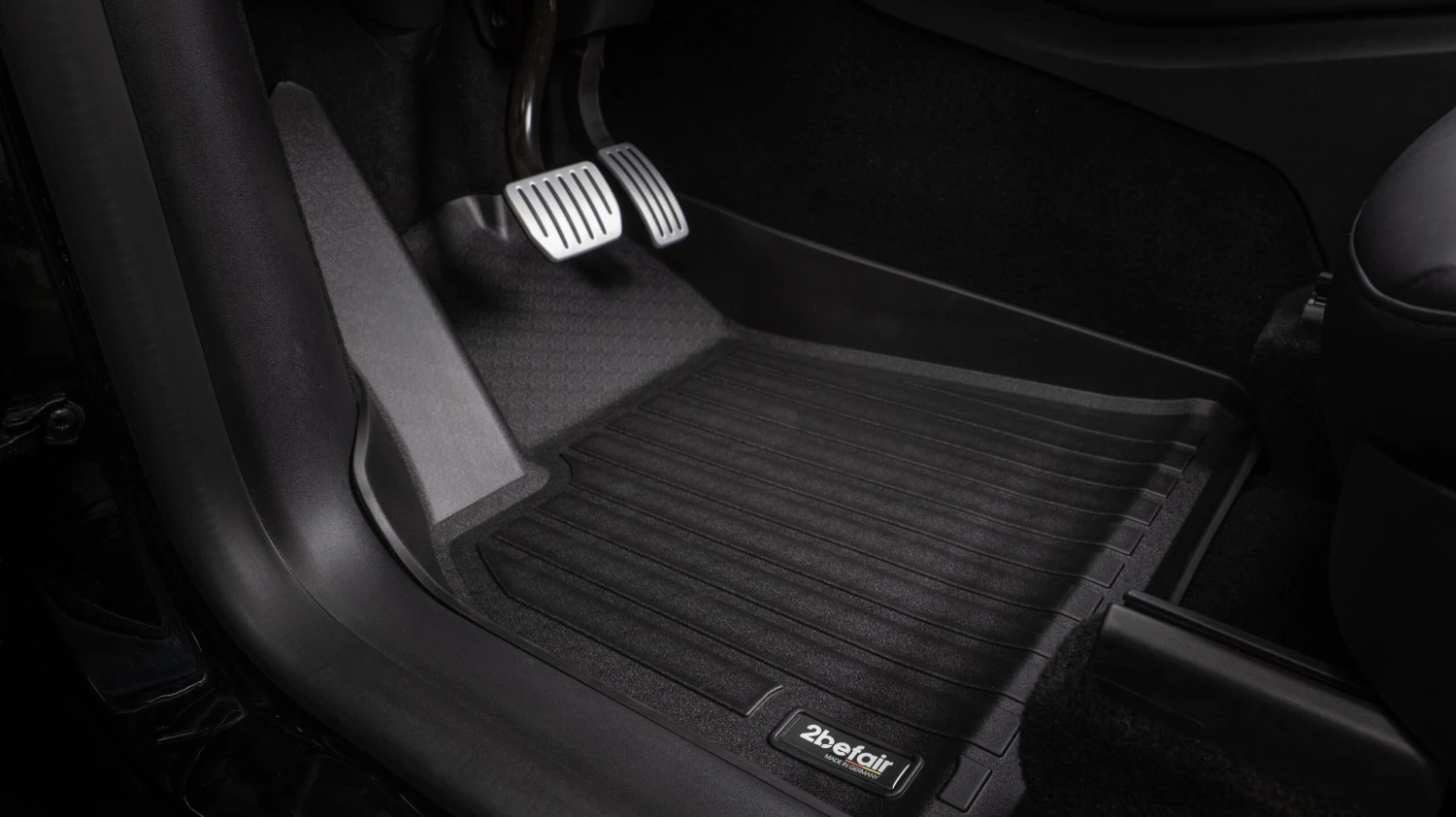 Dieses Set für den Innenraum beinhaltet die Allwettermatten für den vorderen und hinteren Fußraum. Die Fußmatte für die Rücksitze besteht aus zwei Teilen, die in der Mitte nahtlos übereinander gelegt werden und wasserdicht abschließen. Dadurch lassen sie sich leichter ins Auto legen und beim Herausnehmen fällt der Schmutz nicht in den Fußraum.