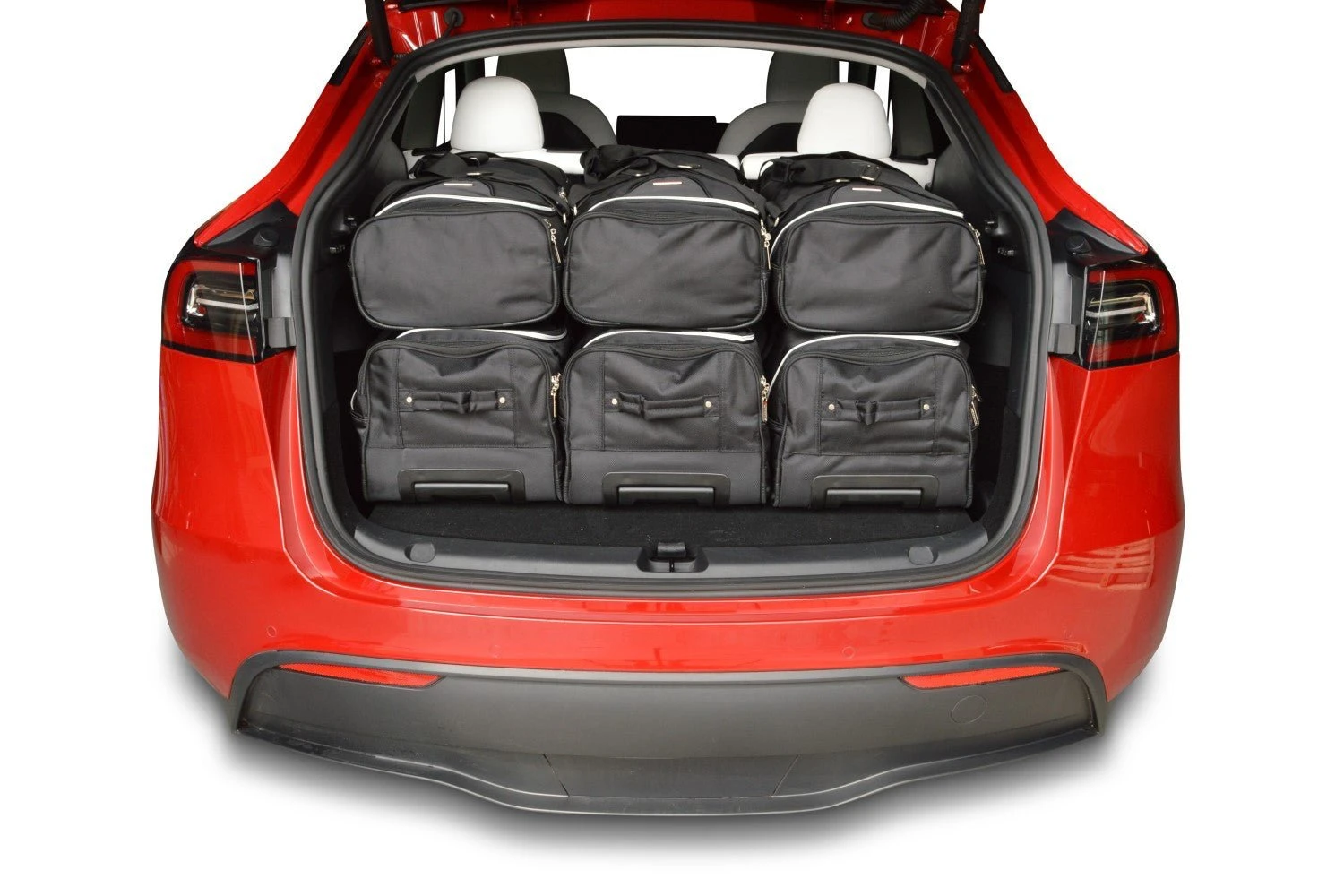 Mit dem Car-bags Reisetaschenset für das Tesla Model Y hast du stets die passenden Taschen für deinen Kofferraum dabei, denn was in die Car-bags Reisetaschen passt, passt auch in deinen Kofferraum. Die Reisetaschen sind aus einem äußerst robusten und zugleich strapazierfähigem Material gefertigt. Das Set besteht aus drei Trolley-Taschen mit praktischen Rädern und einem Teleskopgriff und drei Handgepäck Reisetaschen mit einem robusten und verstellbaren Schulterriemen. Die Taschen sind als Set optimal auf die Größe des Tesla Model Y Kofferraums abgestimmt, ohne Platz zu verschenken. Die Reisetaschen haben eine Breite von circa 30 bis 35 cm und eignen sich dadurch hervorragend gefaltete Kleidung zu verstauen.