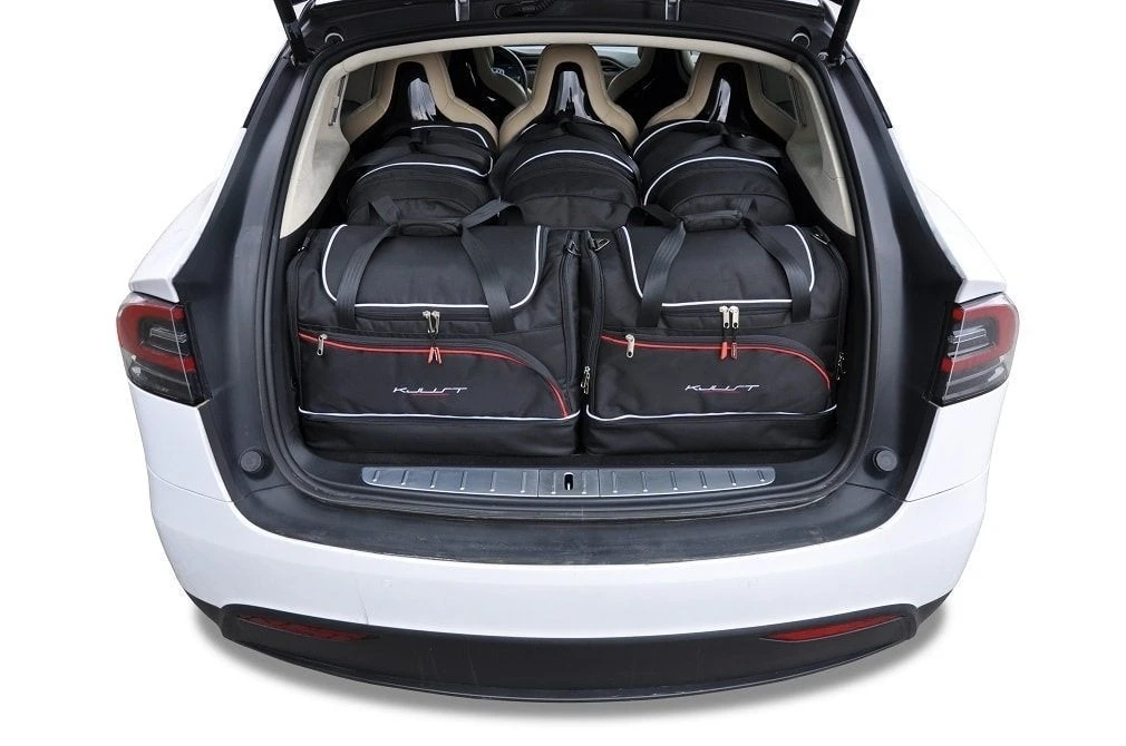 Die Kjust Kofferraumtaschensets sind perfekt optimiert für den Kofferraum deines Model X. Damit nutzt du du den vorhandenen Platz deutlich besser aus.