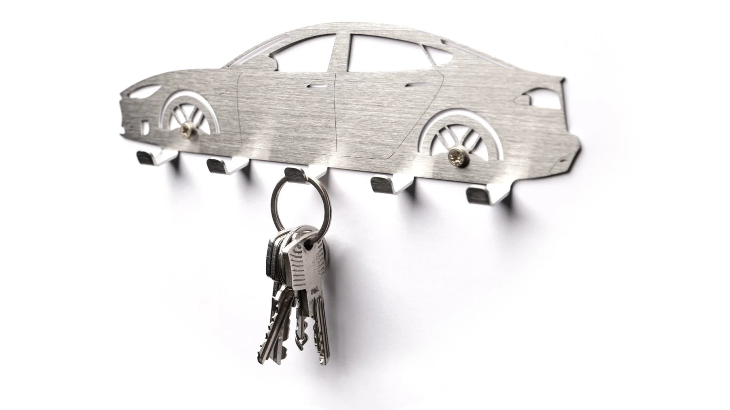 Dieses Edelstahl Schlüsselboard im originalgetreuen Design eines Tesla Model S ist ein echter Eyecatcher. Es bietet 5 Haken für Schlüssel und andere kleine Dinge. Die Gesamtlänge beträgt ca. 25cm.