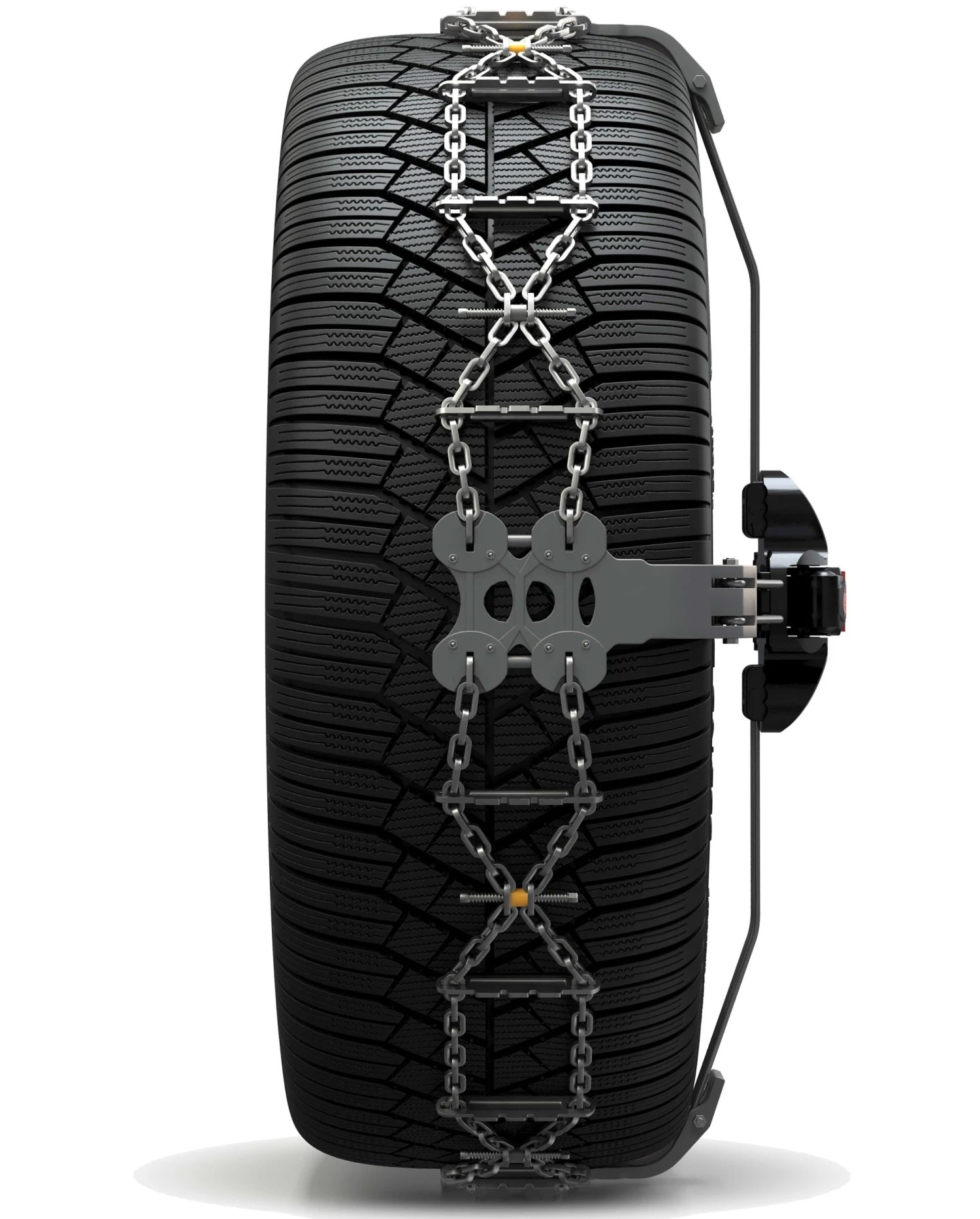 - Das Wheel-Shield-System der Stufe 1 schützt die Räder vollständig vor Kratzern, die durch klassische Ketten verursacht werden. Alle Komponenten, die mit den Rädern in Berührung kommen, sind aus kratzfestem Verbundmaterial hergestellt, und die äußeren Seitenelemente sind mit Schutzpuffern zum Schutz der Felgen versehen
